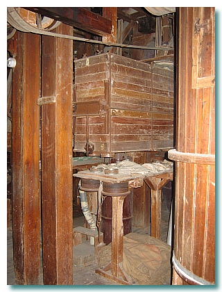 Nachdem das Getreide zermahlen wurde, wird es anschließend gesichtet. Das ist notwendig, weil es den Mahlgang nicht als schönes gleichmäßig feines Mehl verlässt, sondern in verschiedenen Produkten erscheint. Diese Produkte sind außer Mehl noch Dunst, Grieß und Kleie. Die Trennung dieser Produkte übernimmt in der Motormühle ein Plansichter, bei dem das Mahlgut durch verschiedene plan aufeinander liegende Siebe getrennt wird. Die Siebe bestehen aus Holzrahmen, die mit Gazen unterschiedlicher Feinheit bespannt sind. Zwischen zwei Sieben befindet sich jeweils ein Holzrahmen mit einer Fördereinrichtung aus Blech. Der Plansichter besteht aus zwei parallelen Einheiten, zwischen denen sich der Antrieb befindet. Eine Exenterwelle bringt diese beiden Einheiten zum Sieben und Befördern der Produkte in Schwingungen. Dafür ist der Plansichter an speziellen Stäben an der Decke des Sichterbodens hängend montiert.